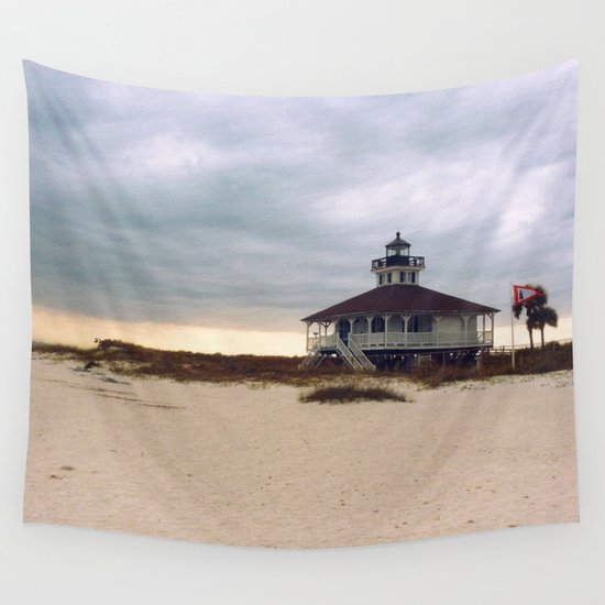 In this original photograph, a stormy sunset is the backdrop for the little lighthouse on the sand, at the tip of Gasparilla Island, on Florida's Gulf Coast.